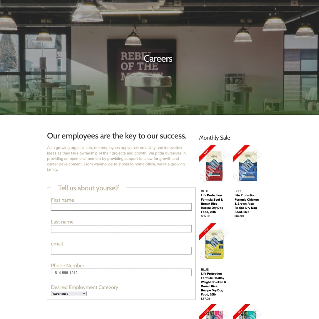 Pet Shop website with a web form.